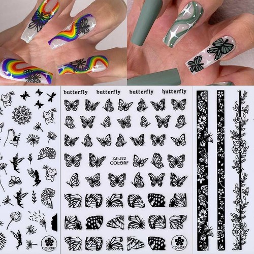 3d Nail Stickers Gold Black White Butterfly Pattern Nail Art Decals Tips Decors Ebay
